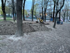 Získali sme totiž DOTÁCIU na zatrávnenie prašnej časti školského dvora. Ďalší sponzor nám daroval 20t substrátu. Ten sme už naviezli a bagrom rozniesli po ploche – pozri fotky. Je však najvyšší čas zasiať trávu, aby sa nám trávnik uchytil.