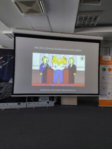 Naši študenti a študentky zo 7.OA navštívili v utorok 28. júna 2022 Centrum vedecko-technických informácií SR, ktoré pripravilo ďalšiu populárnu prednášku z cyklu Bratislavská vedecká cukráreň, tentoraz na zaujímavú tému: Ako konšpiračné teórie (de)formujú dejiny.
