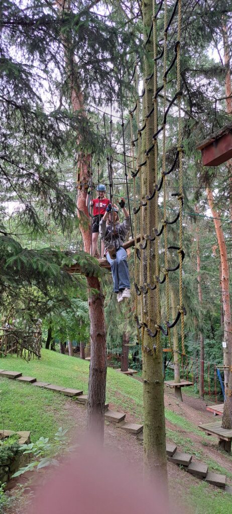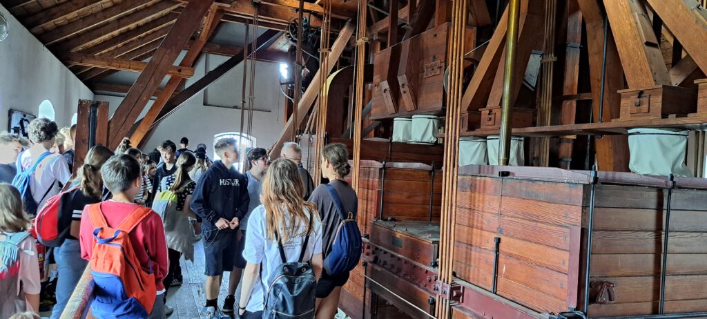 Lezenie v lanovom parku Tarzánia, ktoré sme mali na skok od našej ubytovne, bolo fakt brutálne 😊 Oveľa miernejšia bola turisticko-poznávacia prechádzka mestom, ktorú sme absolvovali za pomoci miestneho sprievodcu. Videli sme mesto z vtáčej perspektívy kostolnej veže, ale aj z „podzemia“ kláštorných krýpt a miestnej ľadovne. Z technických pamiatok sme navštívili 100-ročný mlyn bratov Pilárikových.