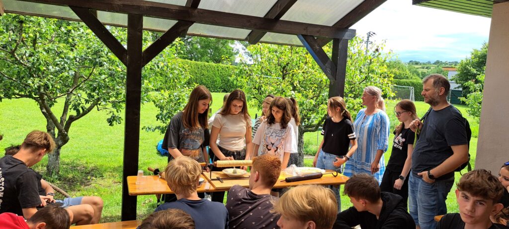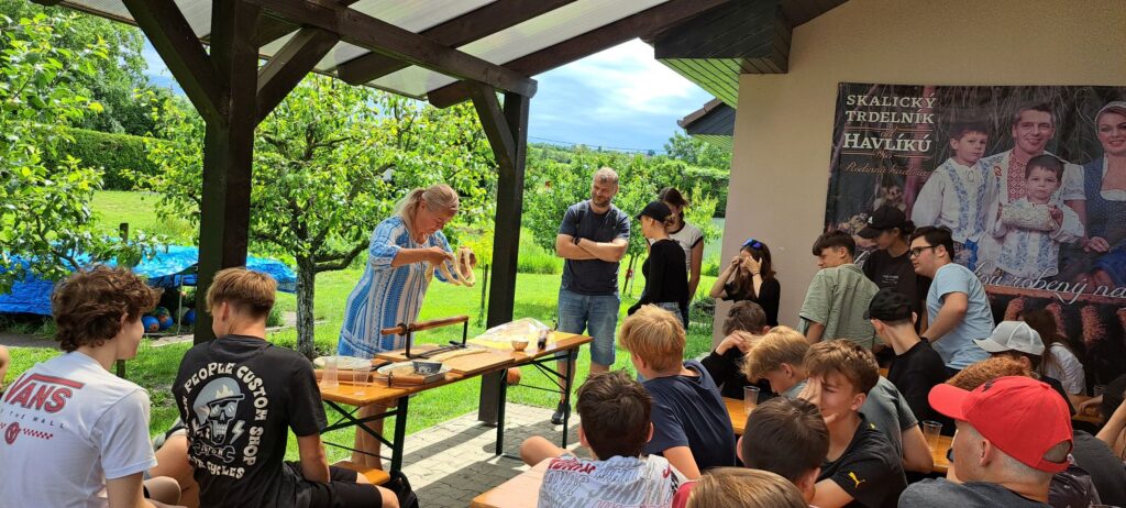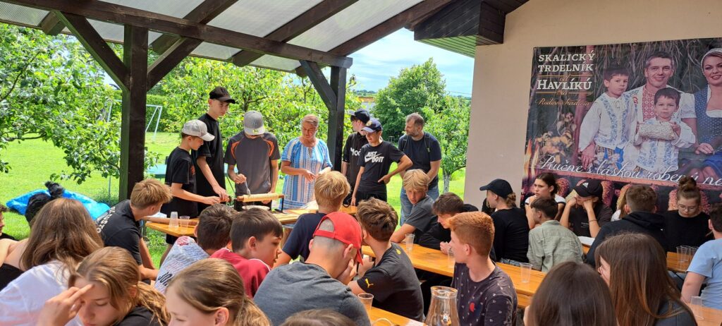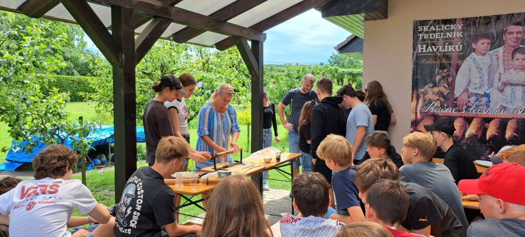 A vyhladnutí sme si upiekli svoje vlastné trdelníky – samozrejme za pomoci rodiny Havlíkovcov.