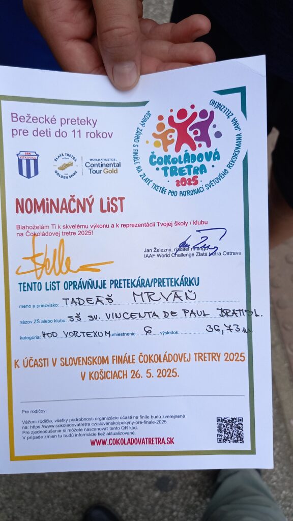 Z celého srdca gratulujeme Tadeášovi Mrváňovi, ktorý v hode