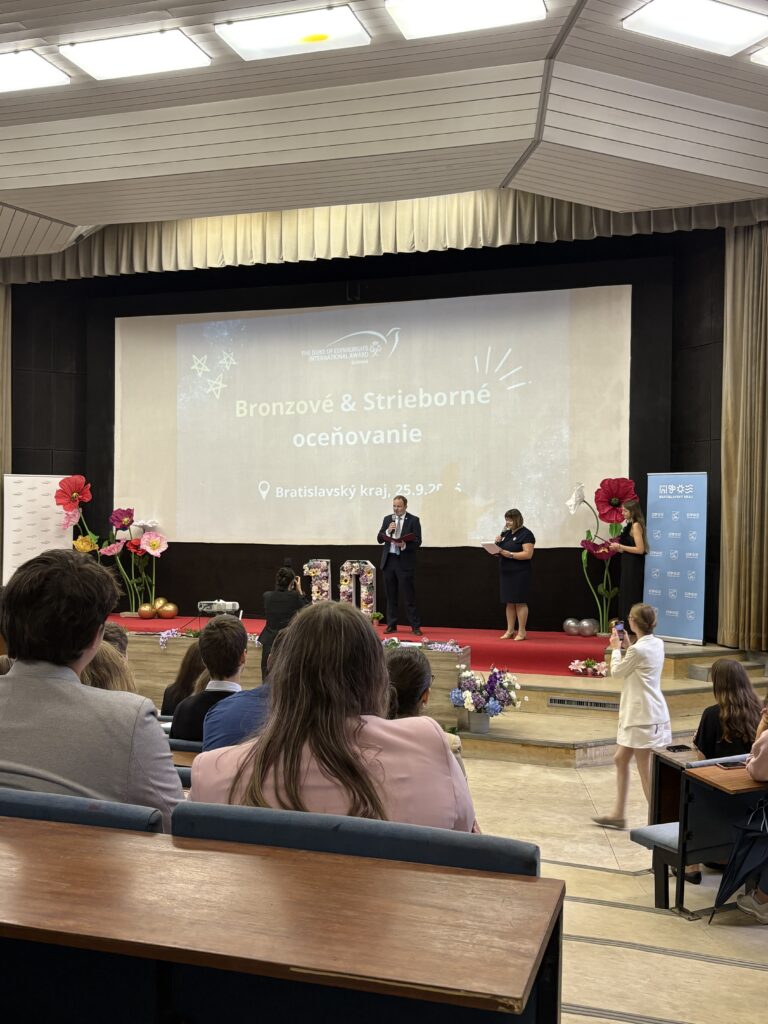 25.9.2025 sme boli svedkami slávnostného odovzdania bronzových a strieborných ocenení v DofE. Za našu školu si striebro odniesli Éva Lelkes a Terézia Beňová, ktoré boli týmto spôsobom odmenené za ich viac ako ročnú snahu v napĺňaní svojich cieľov. Dievčatá – úprimne vám blahoželáme 🙂